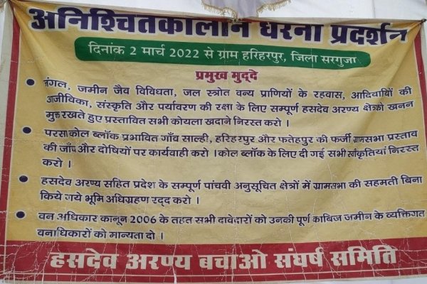कोयले की ऊर्जा का दोहन भी अदानी करेंगे और ग्रीन एनर्जी के लिए सोलर प्लेट भी अदानी लगाएंगे आखिर भारत सरकार किसी एक आदमी पर इतनी मेहरबान कैसे हो सकती है। हसदेव का आंदोलन 10 वर्षों से चल रहा है। हसदेव क्षेत्र में हाथी से लेकर तितली तक का निवास है। इन सब के विनाश का दरवाजा हमने खोल दिया है। हसदेव नदी का कैचमेंट एरिया 1870 वर्ग किलोमीटर का है। इसी क्षेत्र में मिनी माता बांगो बांध है जिससे 4 हेक्टेयर की सिंचाई होती है। क्षेत्र के वनों का विनाश होगा तो मध्य भारत के इस केंद्र बिंदु का जंगल खत्म होगा और इसका असर नागपुर तक पहुंचेगा। नागपुर का हम विशेष उल्लेख इसलिए करते हैं कि अदानी हो या केंद्र सरकार सबका रिमोट तो केशव कुंज है क्या आरएसएस जो स्वदेशी आंदोलन को अपना टैगलाइन बताती है राष्ट्रभक्ति पर जिसका एकाधिकार है उसे नो गो क्षेत्र में चल रही यह डकैती दिखाई नहीं देती.... इस क्षेत्र में 150 प्रकार की वनस्पति 68 प्रकार के पक्षी जिसमें 16 प्रकार की प्रजाति विलुक्ति के स्तर पर है। यह क्षेत्र हाथियों का परंपरागत निवास स्थान है पिछले पांच साल में 205 आदमी हाथियों के गुस्से का शिकार हुए जान गवा बैठे। जैसे-जैसे जंगल कटेगा हाथी जंगल से बाहर आएगा गांव की तरफ जाएगा दाना पानी के लिए आदमियों को मारेगा और आदमी अपनी जान बचाने हाथी को मारेगा। देश में कुल 900 कोल ब्लॉक हैं जिसमें 153 कोल ब्लॉक जंगल के अंदर है ऐसे में कोई जरूरत ही नहीं कि हम जंगल के अंदर का कोयला निकालने जाएं अभी हाल ही में भारत सरकार ने अंतरराष्ट्रीय समझौता पत्र पर साइन किया और वादा किया की 30 साल के भीतर का उपयोग कोयला का उपयोग खत्म कर दिया जाएगा। ऐसे में इतने कम समय के लिए कोयला प्राप्त करने के चक्कर में किसे लाभ पहुंचाया जा रहा है। भारत में वर्तमान में चल रहे कोल ब्लॉक में उपलब्ध कोयले का मात्र एक प्रतिशत का दोहन हम कर पाए हैं। ऐसे में नए कोल ब्लॉक निजी क्षेत्र को देने का कोई औचित्य नहीं है। हसदेव अरण्य के इस क्षेत्र को 2010 में ही नो गो क्षेत्र घोषित किया गया था। सरकार ने पिछले दरवाजे से अदानी की एंट्री कराई यहां का कोल ब्लॉक राजस्थान सरकार को आवंटित किया और राजस्थान सरकार ने अदानी की कंपनी के साथ मिलकर कोल ब्लॉक के लिए समझौता किया। कल खनन का 30 प्रतिशत राजस्थान सरकार को मिलेगा शेष उत्पादन कंपनी कहीं भी बेचेगा इस क्षेत्र की 20 ग्राम पंचायत की सभा ने कभी भी अपनी लिखित सहमति नहीं दी, ध्यान रहे यह क्षेत्र संविधान की पांचवी अनुसूची में आता है बगैर ग्राम सभा अनुमति के खनन नहीं किया जा सकता पर हो रहा है। ऐसे में हसदेव जंगल बचाने का कर्तव्य देश के हर नागरिक का है जब पंजाब में पलारी जलता है तो दिल्ली में बैठा सुप्रीम कोर्ट तक परेशान होता है। हसदेव का पेड़ कटेगा थर्मामी