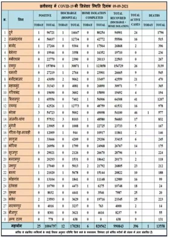 छत्तीसगढ़ में आज 25 नए कोरोना मरीज मिले और एक की हुई मौत विभाग ने जारी किया बुलेटिन