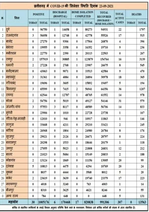 छत्तीसगढ़ में आज 30 नए कोरोना मरीज मिले
