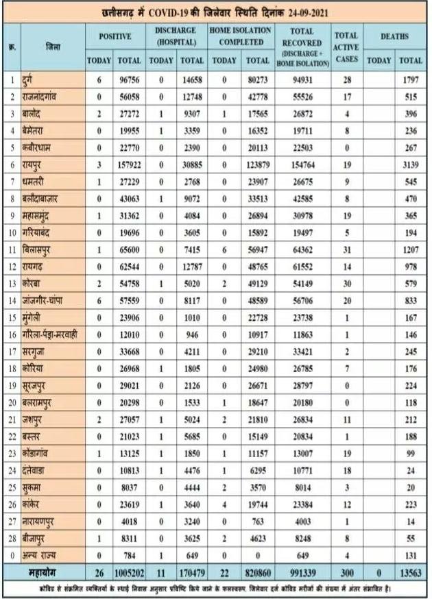 छत्तीसगढ़ में आज 26 नए कोरोना मरीज मिले