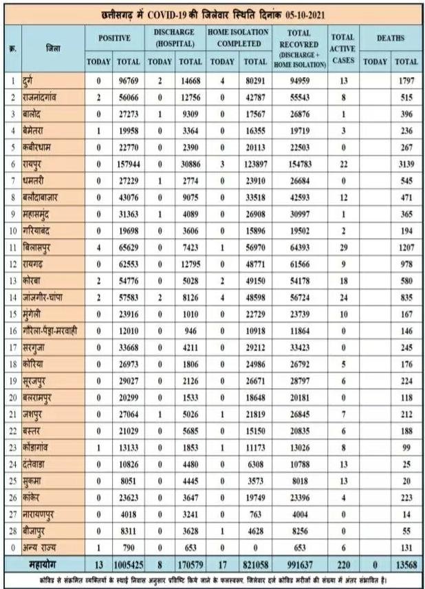 छत्तीसगढ़ में आज 13 नए कोरोना मरीज मिले