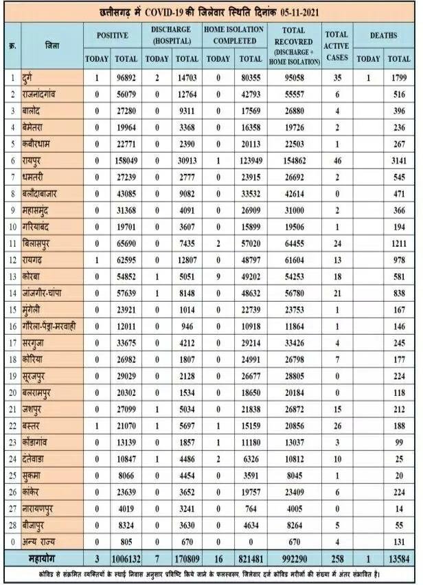 छत्तीसगढ़ में आज 3 नए कोरोना मरीज और एक की हुई मौत