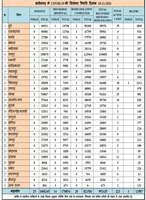 छत्तीसगढ़ में आज 25 नए कोरोना मरीज मिले और एक मरीज की हूई मौत