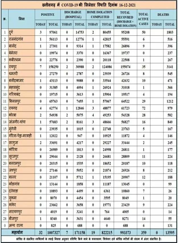 छत्तीसगढ़ में आज 32 कोविड-19 के मरिज मिलें