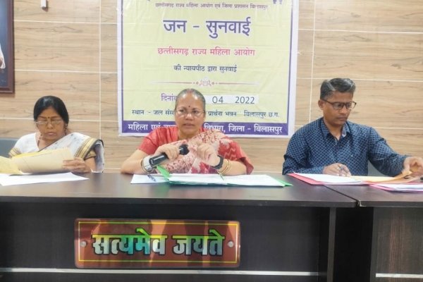 बिलासपुर। राज्य महिला आयोग की अध्यक्ष डॉ. किरणमयी नायक एवं सदस्य शकुंतला राठौर, की उपस्थिति में आज जल संसाधन विभाग के प्रार्थना भवन में महिलाओं से संबंधित शिकायतों के निराकरण के लिए सुनवाई की गई।
