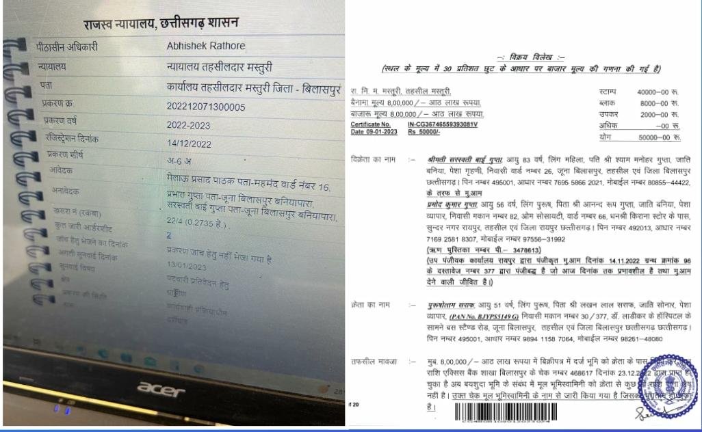 बिलासपुर, 10 जनवरी 2023। मस्तूरी के राजस्व विभाग के कारनामे ही कम थे क्या की अब इस खेल में बिलासपुर का पंजीयन दफ्तर भी शामिल हो गया लगता है। पटवारी हल्का नंबर 25 दर्रीघाट राजस्व निर्माण मंडल मस्तूरी का खसरा नंबर 22 एवं 20 पिछले 2 वर्षों से चर्चित है ग्रामीणों ने एक से अधिक बार इस क्षेत्र की जमीनों को लेकर जांच के लिए कलेक्टर महोदय को ज्ञापन दिया है, कुछ लोगों की बतौर सामाजिक कार्यकर्ता लिखित शिकायत भी माननीय कलेक्टर महोदय को दी गई है जिस पर विधिवत टीम बनाकर जांच के आदेश हुए हैं पर घोटाला है कि रुक ही नहीं रहा है । ऐसी ही एक जमीन का टुकड़ा 22/58 हुआ उक्त प्रकरण में तहसीलदार के न्यायालय में फावती नामांतरण का प्रकरण चला। आवेदक मेलऊ प्रसाद की ओर से प्रस्तुत प्रकरण में अनुविभागीय अधिकारी मस्तूरी ने 14/12 को इश्तिहार प्रकाशन के बाद आगामी तिथि 20/12 , 14/12 को इश्तिहार निकला, 1/12 को तहसीलदार का रिकॉर्ड दुरुस्ती करण का ज्ञापन निकल गया। इस आदेश का पुन:अवलोकन भी हुआ है 21/11 को पुनपुन: अवलोकन पर आदेश हुआ। हल्का पटवारी को रिकॉर्ड दुरुस्ती करण के आदेश हुए रिव्यु से क्षुब्ध होकर अपील प्रस्तुत हुई अपील में रिकॉर्ड कॉल किया गया है और पेशी थी थी, 13/1 है। हल्का पटवारी जानता है कि मामला अपील में एसडीएम कोर्ट में लंबित है बी 1, पी 2, अपडेट नहीं किया जा रहा है उसके बावजूद दस्तावेज बताते हैं कि बिलासपुर पंजीयन कार्यालय में इस जमीन की रजिस्ट्री हो गई इस संबंध में जब हमने पंजीयक से चर्चा की तब उन्होंने कहा कि आप उपलब्ध दस्तावेज हमें भेजें हम जांच करेंगे। गौरतलब है कि बिलासपुर रजिस्टर इन दिनों बिलासपुर एवं रायपुर के दोहरे प्रभार में हैं । मस्तूरी, दर्रीघाट, महमंद में मिशन से अतिरिक्त भूमि इन दिनों बिकने की खूब चर्चा है निर्वाचित जनप्रतिनिधि यह आरोप लगाते हैं कि क्षेत्र में 3 एकड़ से अधिक सरकारी जमीन इसी तरह बेच दी गई है।