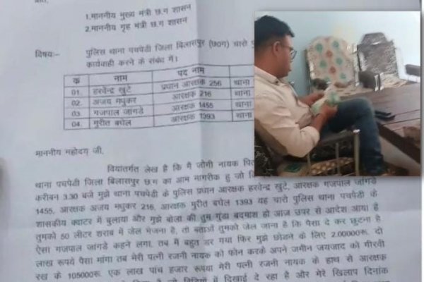 एक तरफ छत्तीसगढ़ की पुलिस केंद्र सरकार के साथ मिलकर नक्सलवाद पर पूर्ण नियंत्रण कर रही है। लगातार मूडभेद के कारण नक्सली आत्मसमर्पण भी कर रहे हैं। कुछ मामलों में छत्तीसगढ़ पुलिस पर झूठ एनकाउंटर का आरोप भी लग रहा है। पर सब के बीच बिलासपुर पंचपेड़ी थाने में ग्राम मानिकचौरी के जोगी नायक पीड़ित ने जो हिम्मत दिखाई है वह कम लोग ही दिखा पाते हैं। उनकी पत्नी ने थाने में चार आरक्षक 1455, 216, 1393 व एक अन्य पर लिखित शिकायत दी है और रिश्वत देते हुए बनाए गए वीडियो को भी दिया। पीड़ित ने कहा कि उसे गुंडा बदमाश, दारु तस्कर में अंदर करने का भय दिखाकर ₹200000 मांगा गया और मामला 105000 में सेट हुआ। वीडियो में पुलिस वाला आदमी सिविल ड्रेस में दिखाई दे रहा है और विभिन्न किस्म के नोट गिनते दिखाई दे रहा है। कुल मिलाकर यही हाल रहा तो नक्सलवाद खत्म नहीं होने वाला और नक्सलवाद को पैदा करने के लिए छत्तीसगढ़ पुलिस ही काफी है।