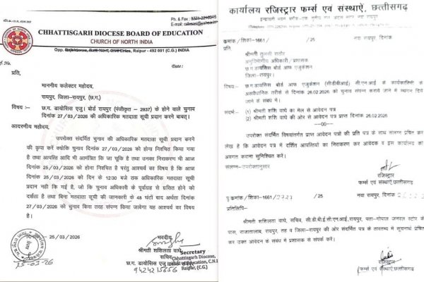 फरवरी के इस पत्र के आदेश को चुनाव अधिकारी ने अनदेखा कर दिया और मार्च के 17 तारीख को चुनाव की नई अधिसूचना जारी कर दी। चुनाव अधिकारी महोदय को 11 आपत्तियों का निराकरण करना था और उन्होंने नहीं किया। इसके बाद नई अधिसूचना जारी होने के बाद आज तारीख 25 तक मतदाता सूची की प्रतिलिपि छत्तीसगढ़ डायोसिस बोर्ड ऑफ़ एजूकेशन की सचिव को नहीं मिली इस संदर्भ में उन्होंने एक पत्र 12:30 पर कलेक्टर रायपुर को दिया है। जिसमें उन्होंने कहा है कि 48 घंटों के बाद अर्थात तारीख 27 को चुनाव कैसे संपन्न कराया जा सकता है जबकि सूचना अधिकारी ने ना तो सूचना पटल पर मतदाता सूची प्रदर्शित कि नहीं मांगे जाने पर दी।