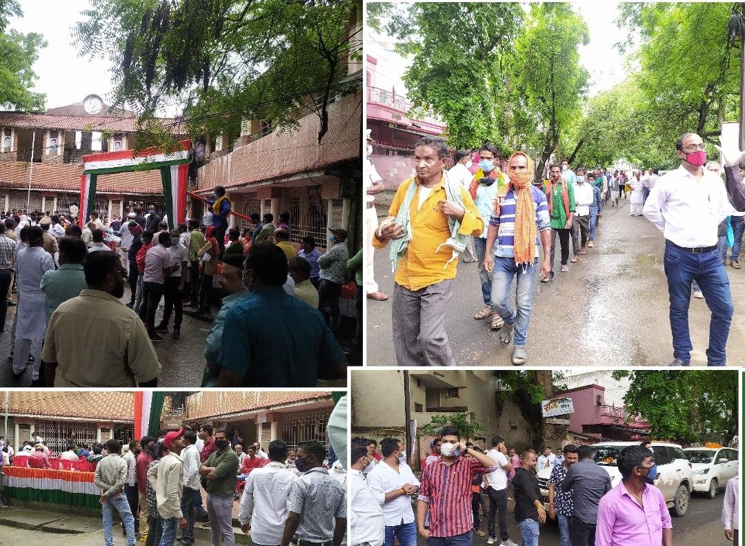 बिलासपुर। बिलासपुर सहित पूरे राज्य में अनलॉक की श्रेणी चल रही है अभी भी कोचिंग व्यवसाय को छुट नहीं मिली है स्कूल में सामान्य पद्धति से शिक्षा जैसा महत्वपूर्ण काम भी बंद है पर आज छत्तीसगढ़ भवन और कांग्रेस भवन सहित आसपास के क्षेत्र को देखकर ऐसा लग रहा था कि कोविड-19 ने बाकायदा कलेक्टर से कुछ दिन का अवकाश ले लिया है। और कलेक्टर ने कोविड-19 की अवकाश पर जाने की एप्लीकेशन पर सहमति व्यक्त की है तभी तो पूरे क्षेत्र में जबरदस्त भीड़ बिना सैनिटाइजिंग, बिना मास्क और बिना सोशल डिस्टेंसिंग के सुबह से शाम तक लगी रही।