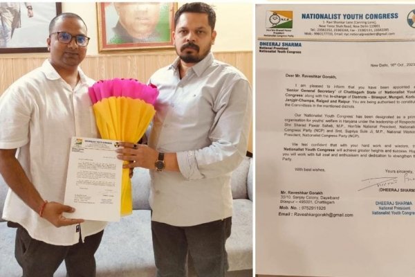 रवेश्कर गोरख को एनसीपी यूथ कांग्रेस के राष्ट्रीय अध्यक्ष धीरज शर्मा ने छत्तीसगढ़ का सीनियर जनरल सेक्रेटरी नियुक्त किया है। साथ ही उन्हें बिलासपुर, जांजगीर चांपा, रायपुर, रायगढ़, कोरबा जिले का इंचार्ज भी बनाया है।