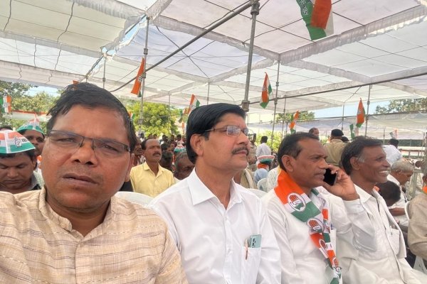 ब्लॉक कांग्रेस अध्यक्ष के साथ मस्तूरी क्षेत्र के कार्यकर्ता पहुंचे सभा स्थल।