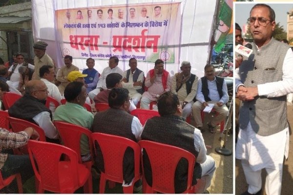 3 दिसंबर मतगणना परिणाम के बाद 22 दिसंबर के दिन आज कांग्रेस का पहला धरना प्रदर्शन था यह धरना प्रदर्शन एआईसीसी के निर्देश पर हुआ। संख्या बल में बेहद चिंतनीय स्थिति के साथ मात्र 100 की संख्या से अधिक धरना प्रदर्शन के समय चार घंटे में एक बार भी इस संख्या ने सैकड़ा पर नहीं किया। धरना स्थल पर अपने भाषण में भी और मीडिया में दिए गए वक्तव्य में भी सबसे ज्यादा पूर्व विधायक शैलेश पांडे ही बोले। उन्होंने एक तरफ केंद्र की भाजपा सरकार और उनके सदन संचालक को लेकर तीखी आलोचना की वही प्रदेश सरकार के कार्यकलाप पर भी बोला 146 सांसदों के निलंबन के बाद पास किए गए तीन विधेयक जो सीधे आम आदमी की जिंदगी से वास्ता रखते हैं पर उन्होंने कहा कि लोकतंत्र में आंदोलन करना एक अधिकार है और सरकार इसे बंद कर देना चाहती है।