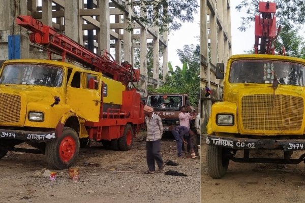 आदिकालीन ट्रक और उस पर नया कंप्रेसर वाह रे नलकूप खनन विभाग