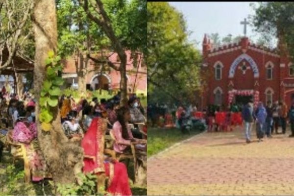 मंदिर में क्रिसमस की प्रार्थना धरे रह गए कोविड के निर्देश